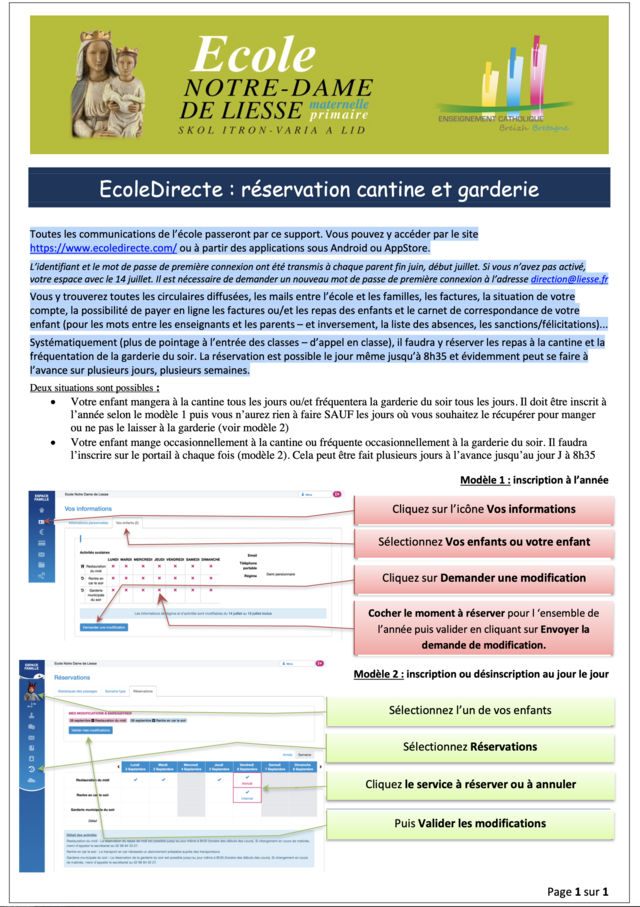 Systématiquement (plus de pointage à l’entrée des classes – d’appel en classe), il faudra y réserver les repas à la cantine et la fréquentation de la garderie du soir. La réservation est possible le jour même jusqu’à 8h35 et évidemment peut se faire à l’avance sur plusieurs jours, plusieurs semaines.