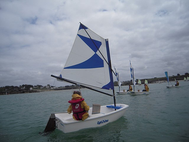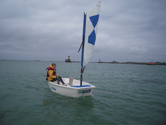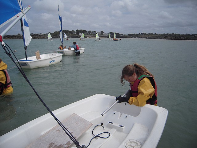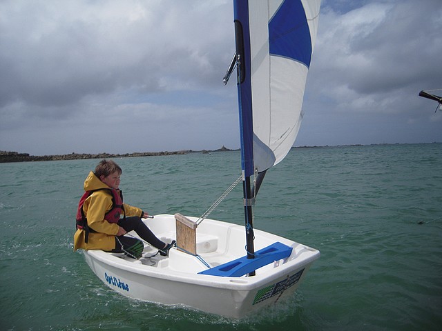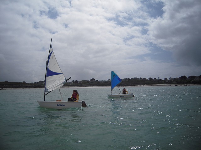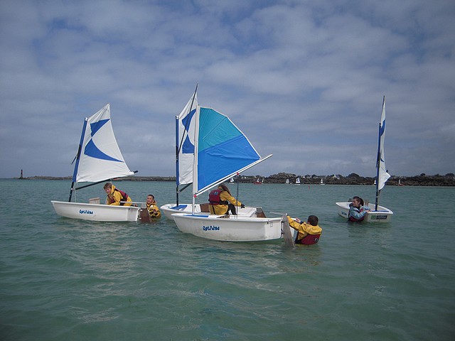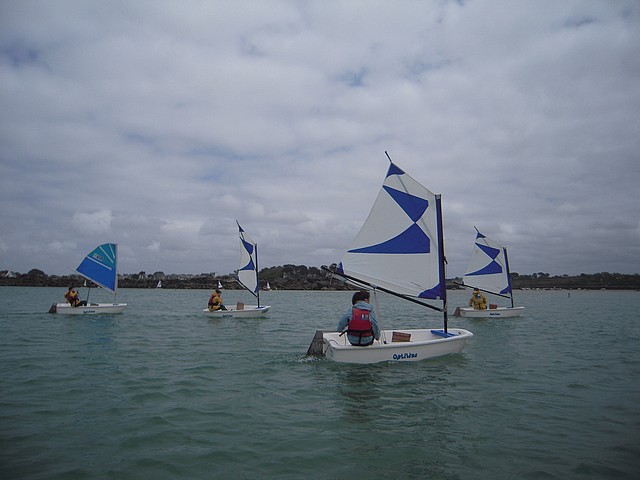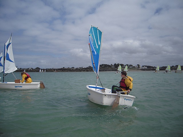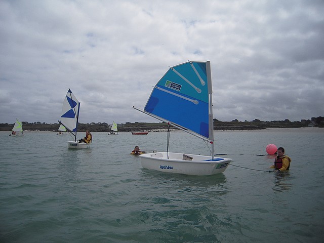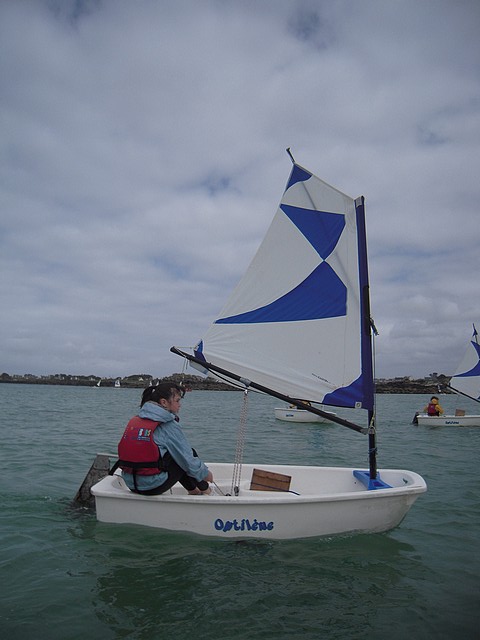 Sous un ciel un peu menaçant, les élèves ont pu pratiquer l’optimist. Chacun était seul dans le bateau gréé avec une voile papillon.