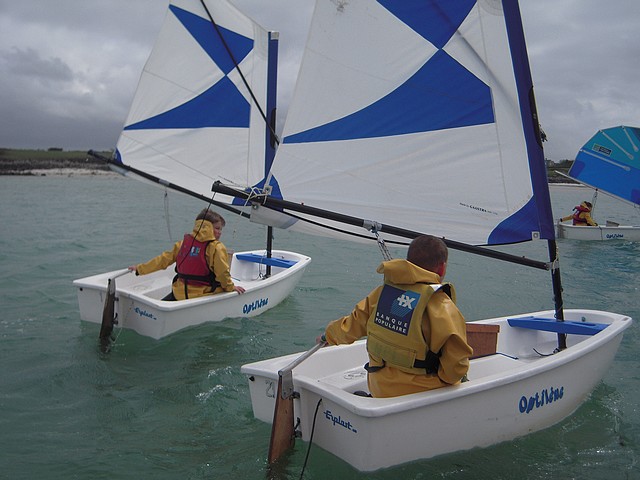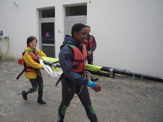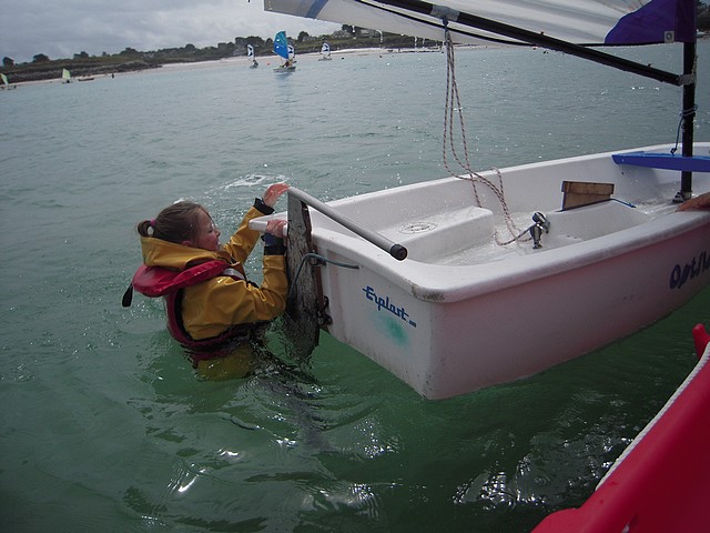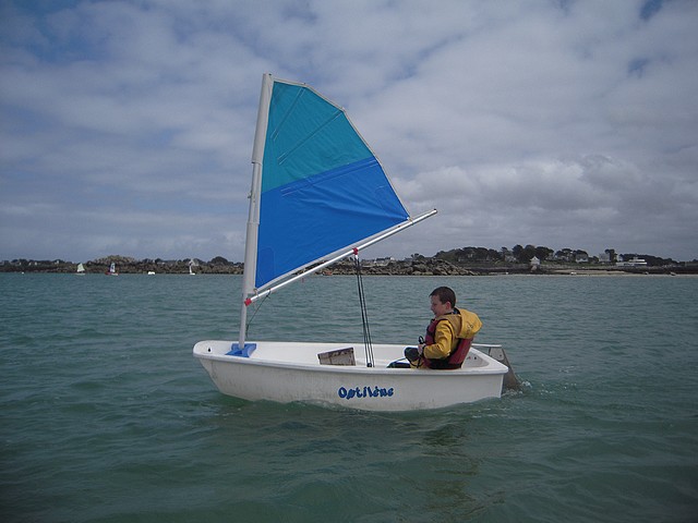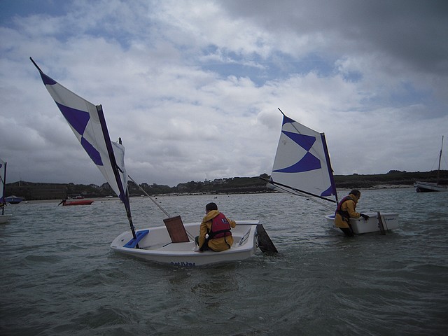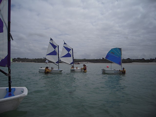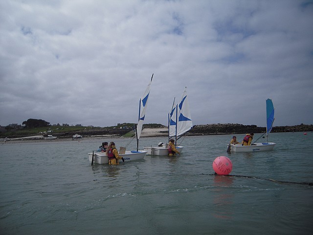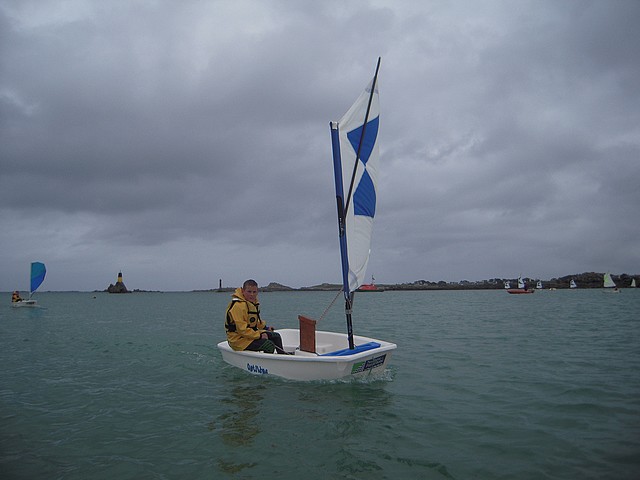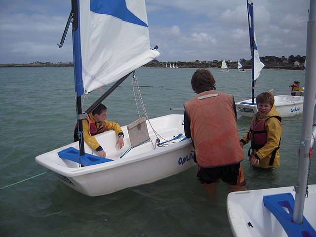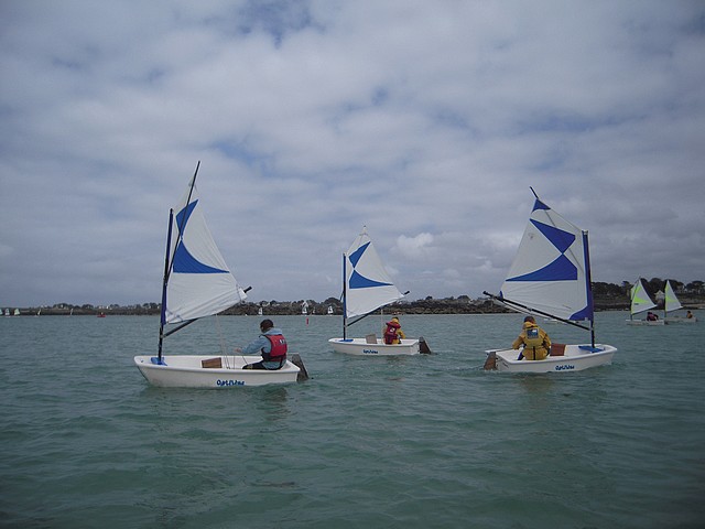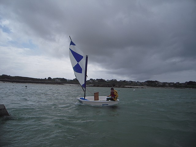 Sous un ciel un peu menaçant, les élèves ont pu pratiquer l’optimist. Chacun était seul dans le bateau gréé avec une voile papillon.