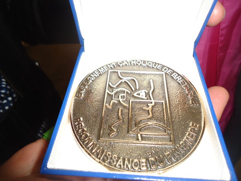 Ce mardi, par délégation de Patrick Lamour, Jacques Jégou, professeur animateur à la DDEC et ancien chef d’établissement, lui a remis la médaille de reconnaissance de l’enseignement catholique.