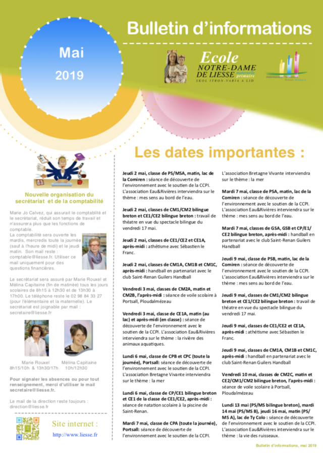 Bulletin d’informations du mois de mai 2019