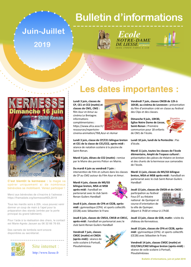 Bulletin d’informations des mois de juin et juillet 2019