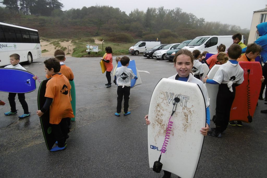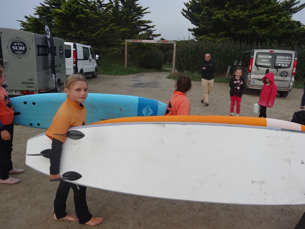 Tous les lundis matin de septembre et octobre, notre classe de CE2A de Notre Dame de Liesse est allée faire du surf aux plages de Porsmilin et des Blancs Sablons.