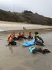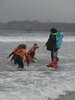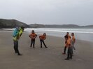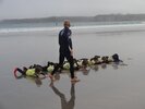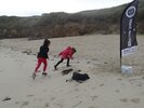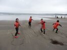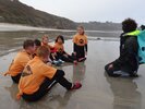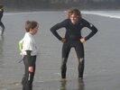Pour commencer, on enfilait les combinaisons – ce n’est pas toujours facile ! Ensuite nous descendions les planches sur la plage où les moniteurs nous rappelaient les règles de sécurité : de l’eau jusqu’à la taille et on ne s’éloigne pas ! Puis ils nous apprenaient à observer la météo : la température de l’eau, la direction du vent, la hauteur des vagues, la quantité d’écume.