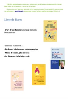 Soirée Apéro de l’APEL : ateliers d’expérimentation - GRANDIR EN TOUTE CONFIANCE jeudi 12 février 2026, par Directeur de l’école Le livret des ateliers : La bibliographie pour continuer à réfléchir :