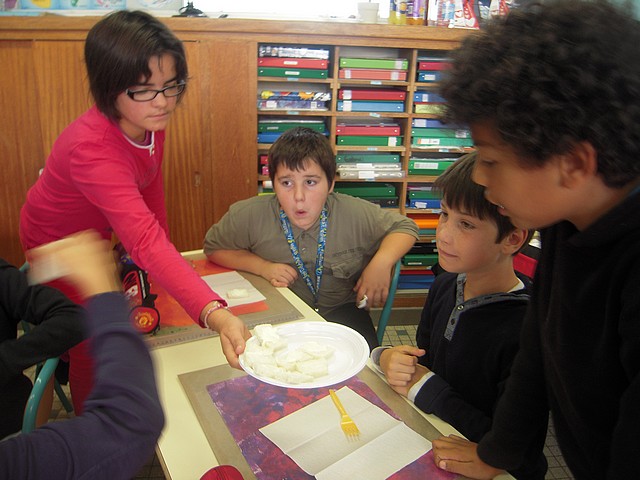 Nous avons profité de la semaine nationale du Goût pour organiser dans la classe des dégustations. Chaque élève était invité s’il le souhaitait à faire découvrir aux autres camarades une saveur, un goût plus ou moins surprenant.