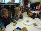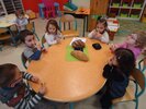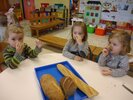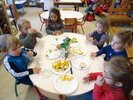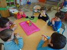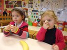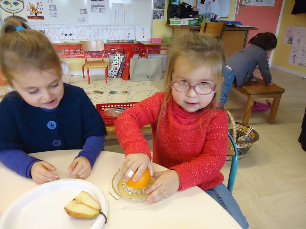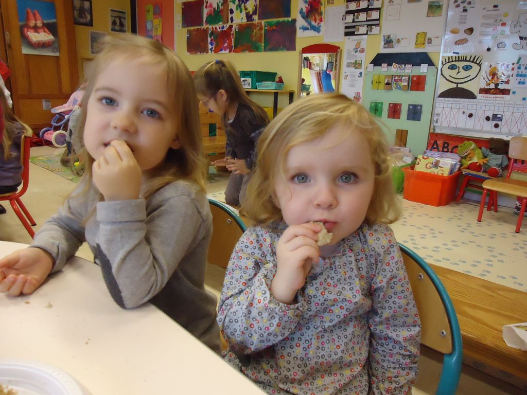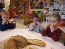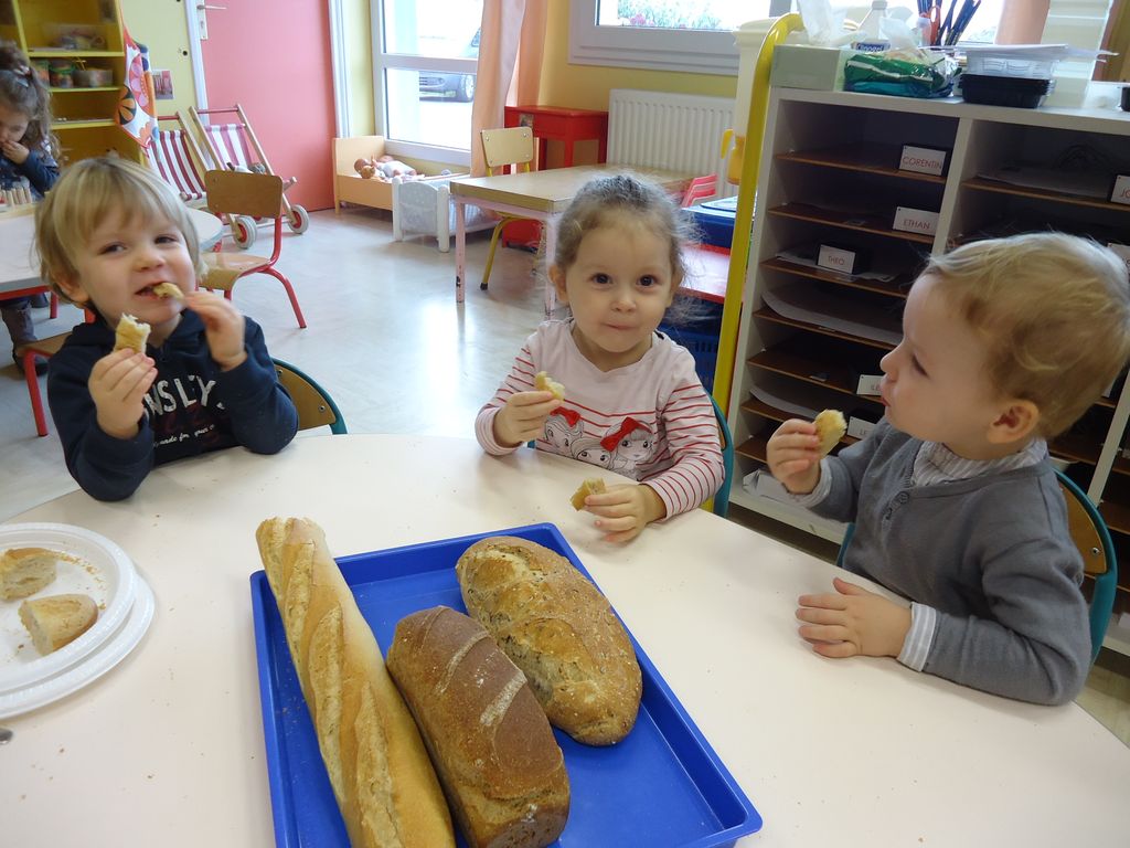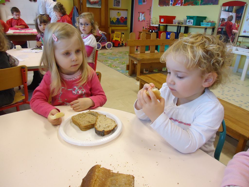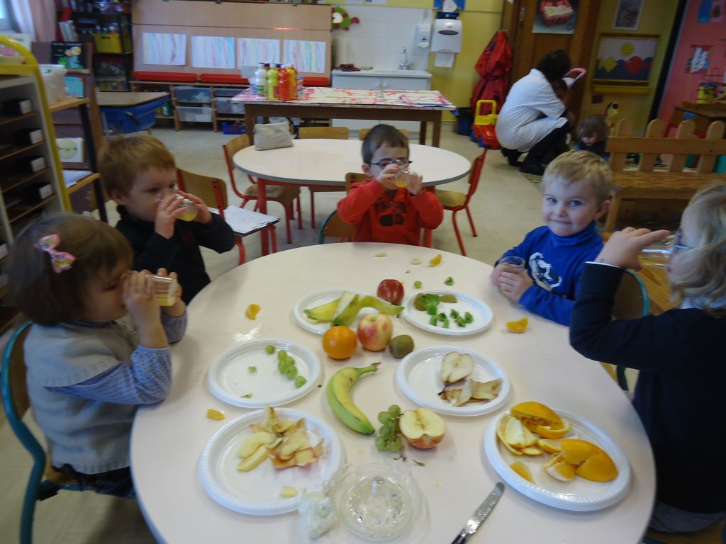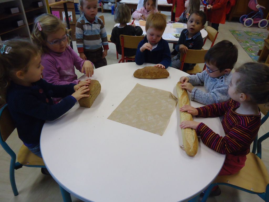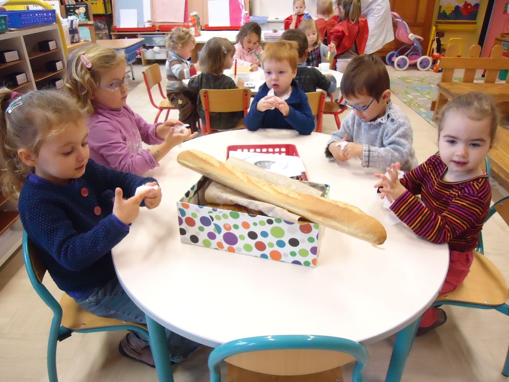 Durant 3 semaines, les élèves des classes PSA, PSB, PS/GS et bilingue ont découvert les aliments qui constituent un bon petit déjeuner : le pain (blanc, complet , aux céréales) , les fruits (pommes, poires, bananes, raisins, kiwis et oranges) et les laitages (yaourts, fromage blanc, fromage et lait).
