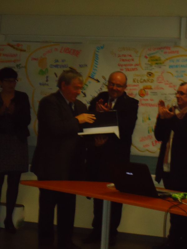 A l’issue des vœux, du fait de don, un cadeau lui a été remis. Il a été choisi par la nouvelle Présidente d’OGEC en complicité avec la famille d’Hélène Keromnès
