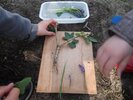 Nous avons joué à l’aveugle, nous avons réalisé un arbre à partir des branches, des feuilles et des fleurs du bois et pour finir, nous avons dû rechercher un arbre en ayant juste le dessin de sa feuille comme indice...pas facile !
