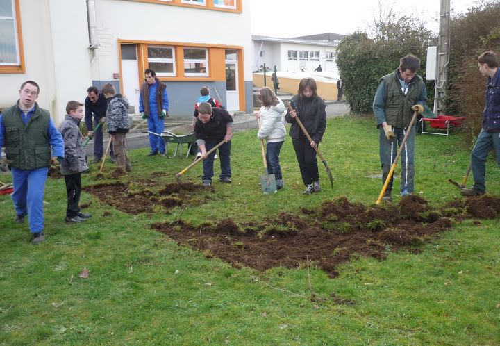 Le jardin est né un jour d’hiver (décembre 2010). Les jeunes adultes des Genêts d’Or nous ont aidé à le réaliser.