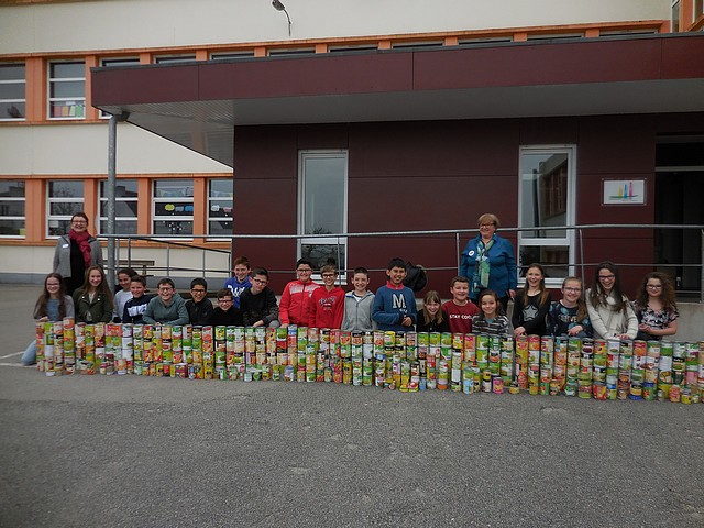 Comme nous en avions parlé au mois de mars dernier, l’école, grâce aux élèves de CM2 catéchisés, a organisé une récolte de boîtes de conserves, pour "Construire un Mur contre la Faim".