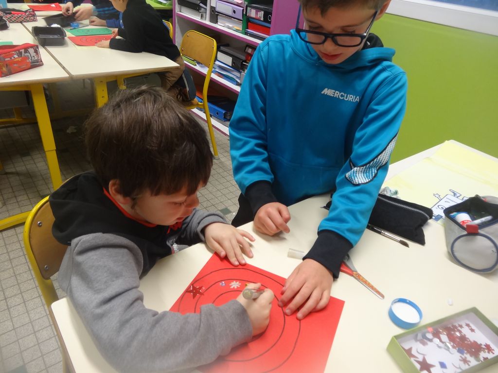PS/MS et CE1/CE2 bricolent pour Noël ensemble