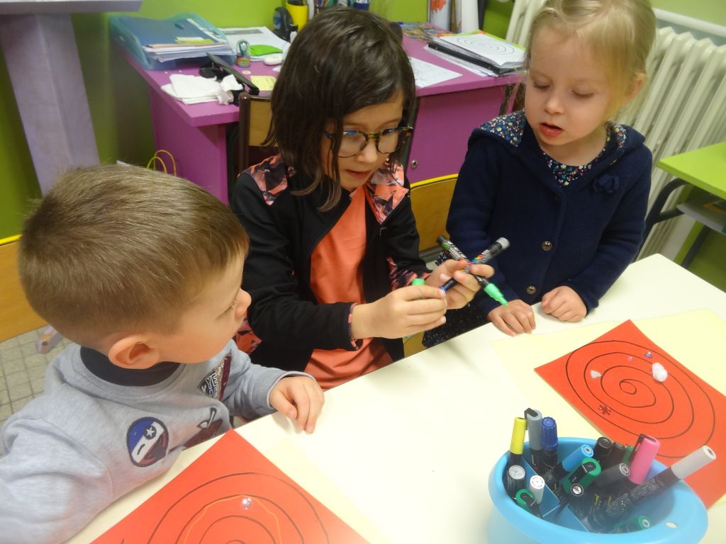 Photos des temps d’échanges entre les PS-MS et les CE1A, CE1/CE2