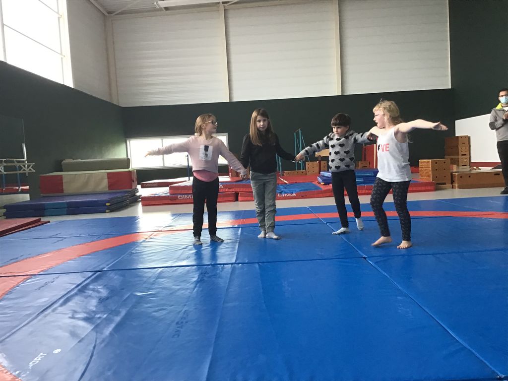 Les CP/CE1 ont pratiqué la gym avec Sébastien Le franc à la salle de Trévisquin. Ils ont beaucoup travaillé et ils ont terminé la dernière séance par la présentation d’un petit spectacle par groupe de 3-4 enfants.