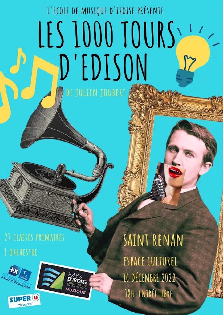 Une première en pays d’Iroise : 250 élèves dont les 3 classes de CM2A, CM2B et CM1/CM2 bilingue breton de l’école Notre Dame de Liesse sur scène à l’espace culturel de St Renan pour chanter "Les 1000 tours d’Edison" comédie musicale de Julien Joubert, l’incroyable vie de Thomas Edison, l’inventeur aux mille brevets accompagnés par 8 musiciens de l’école de musique communautaire du pays d’Iroise sous la direction de Perig Le Cadre. Un moment qui restera dans la tête des enfants, un beau moment d’art et de culture.