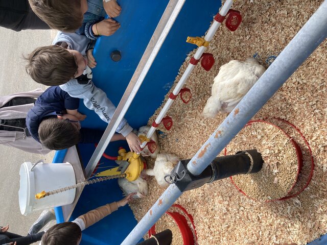 Après les CE1A et les CP/CE1, les élèves de GSA et GSB sont partis à la découverte d’une ferme de la famille Petton, éleveur de volaille. Une façon de découvrir les métiers de l’agriculteur et d’où vient les nuggets, les cuisses de poulets... Un beau temps d’apprentissage pour tous.