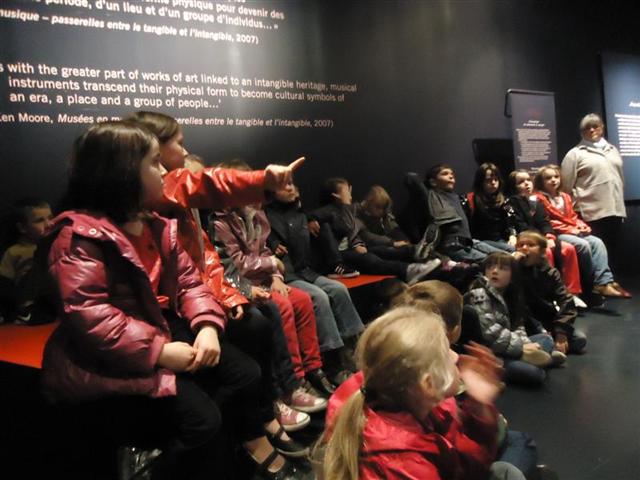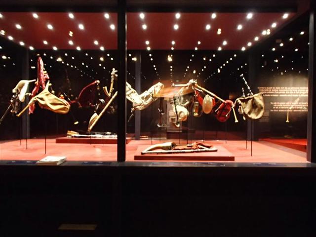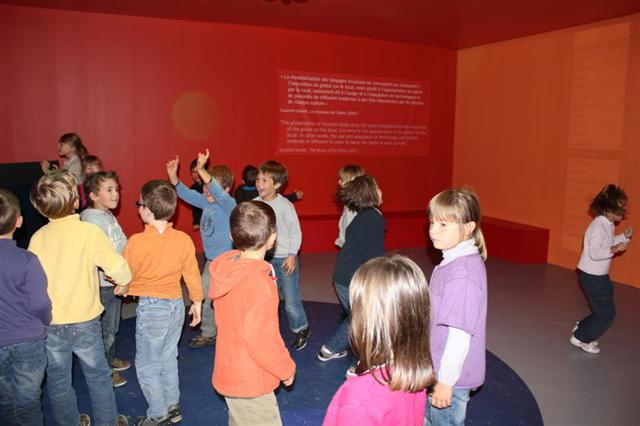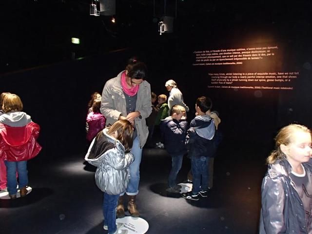Pendant la visite de l’exposition, nous avons pu écouter des musiques de tous les pays, découvrir de très beaux instruments, voir toute une collection de cornemuses et pour finir la visite, nous avons dansé "disco" ! C’était chouette...