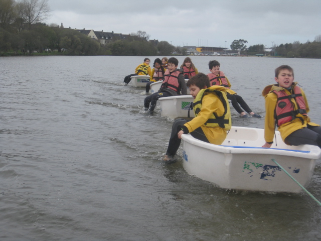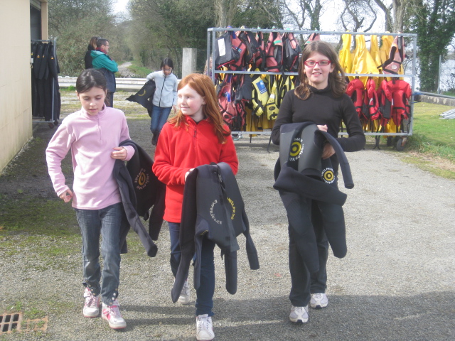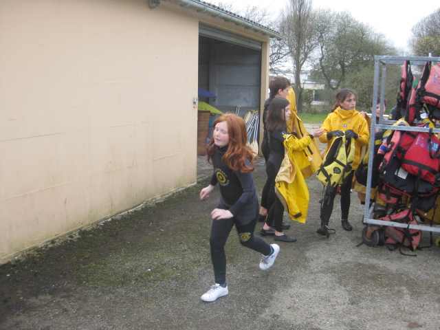 Vendredi 22 mars les élèves de la classe ont pu assister à leur première séance de voile. Après un accueil par les 3 moniteurs : Gilbert, Jean-Marie et Ronan et un point sur la météo et les équipements mis à disposition, les enfants ont enfilé combinaison intégrale (pour certains cela a été une vraie épreuve), ciré et gilet de sauvetage.