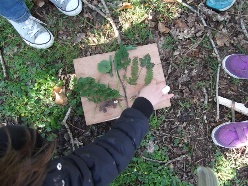 Nous avons joué à l’aveugle, nous avons réalisé un arbre à partir des branches, des feuilles et des fleurs du bois et pour finir, nous avons dû rechercher un arbre en ayant juste le dessin de sa feuille comme indice...pas facile !